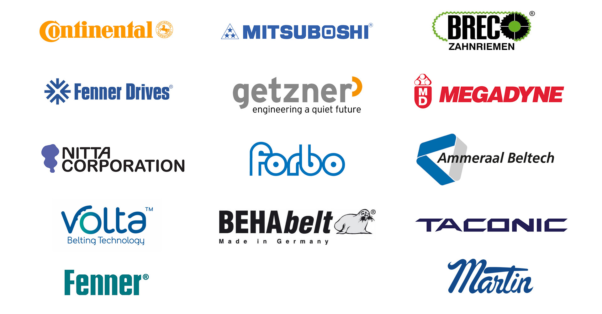 Continental 德國馬牌,康迪泰克,大陸集團,日本三星,Breco,Fenner Drives,美國芬納,日本新田,霓達,福爾波,艾瑪拉皮帶,麥高迪,馬丁傳動件