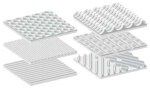 Forbo Siegling has developed and optimised a wide range of surface patterns for very different applications. The appropriately optimised surface patterns ensure for example, ideal grip with demanding goods such as roller suitcases and good release properties with dough and are also used to emboss manufacturer-specific patterns on the under side of chocolate. Siegling Transilon patterned belts can run at incline angles of up to 30° without profiles. For larger incline angles they can also be fitted with profiles and sidewalls.