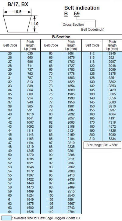 Belt width 16.5mm, belt height 11.0mm, rubber material, available in trimmed and toothed models, and in combination models.