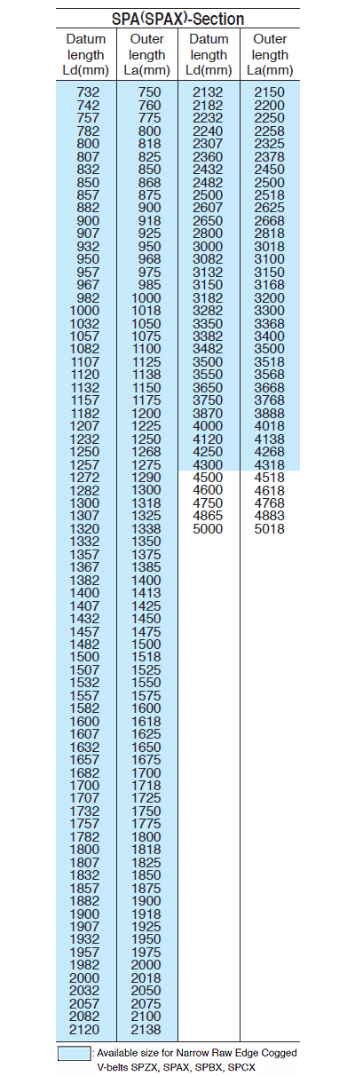 SPA: Belt width 12.7mm, belt height 10.0mm