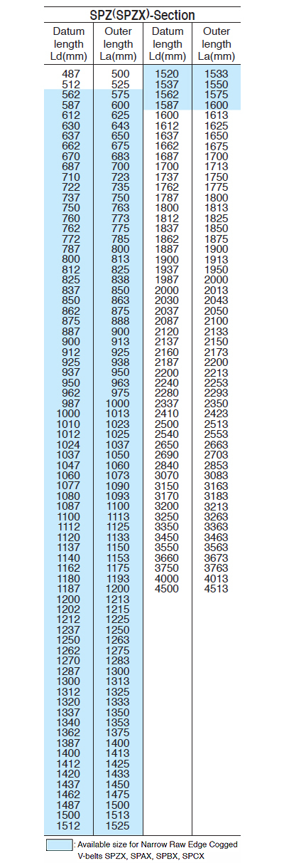 SPZ: Belt width 9.7mm, belt height 8.0mm