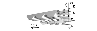 | Belt widths b -ATN12,7K6 | Belt widths b -ATN12,7K6 DC | V-groove location | B | C min | Number of shapes for inset parts per tooth |