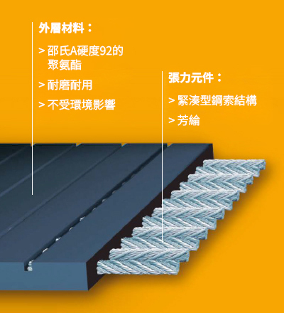 Continental PU平皮帶,德國製造,適用於汽車製造廠、洗車場、電梯、健身房及健身器材等起重應用。