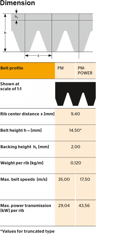 符合DIN 7867標準的多楔帶,適用於高齒輪傳動比、高線速度、小帶輪直徑和背部張緊輪。