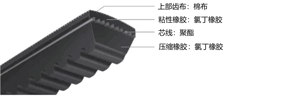 • 繩芯:皮帶是強力傳動的核心部件。為了充分發揮其作用,我們採用高抗拉強度、低伸長率、高抗彎曲疲勞性的芯線。