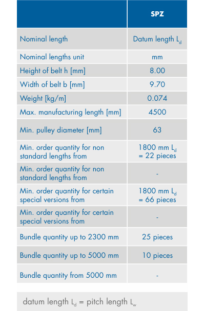 optibelt SK SPZ 型號 : SPZ 487 - SPZ 1137